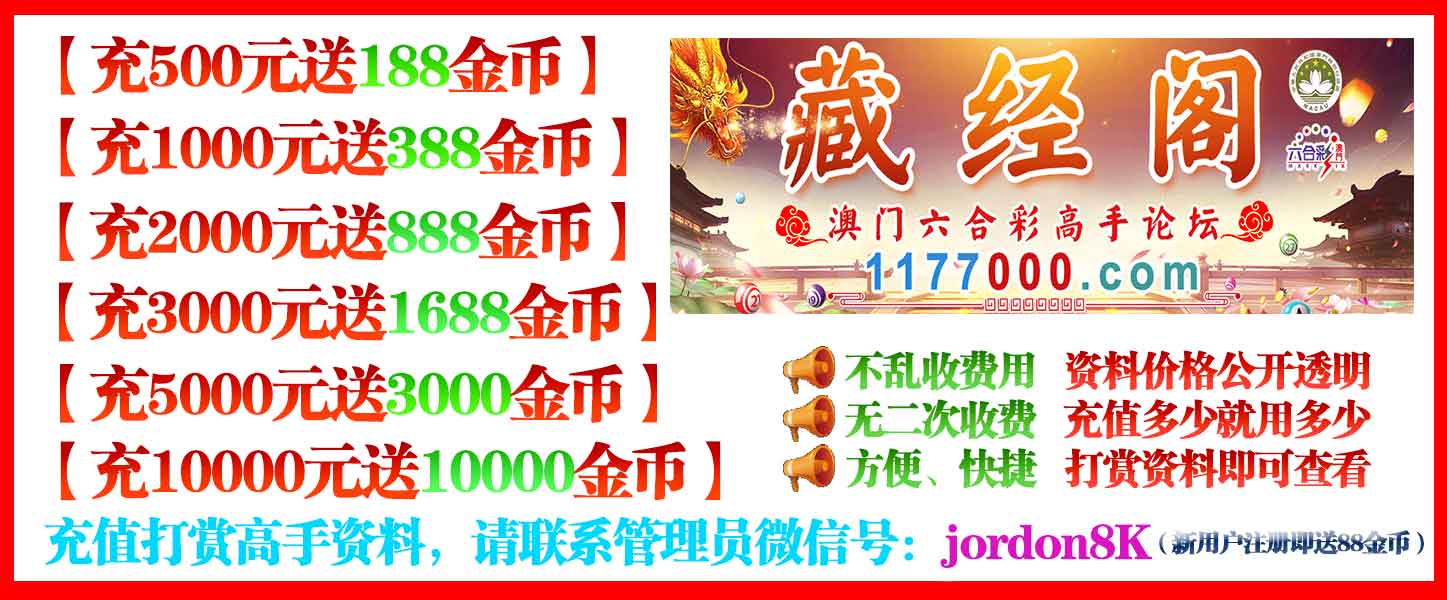 公告:本站资料均以金币出售,管理员不发表资料,需要充值的彩友请先在论坛首页注册好个人账号后再联系管理员充值,充值后自由购买,杜绝二次收费!所有资料必须经过版主严格审核后才能出售,资料没有百分百中奖(请理性消费)错对绝不更改。保证彩民买到是百分百真实资料,如购买资料发现开奖前后资料不一致,请截图向管理员举报(举报有奖),同时本站欢迎各路高手前来发表,用手机收藏 澳门藏经阁WWW.1177000.COM,每天助你轻松中奖!管理员微信:jordon8K。